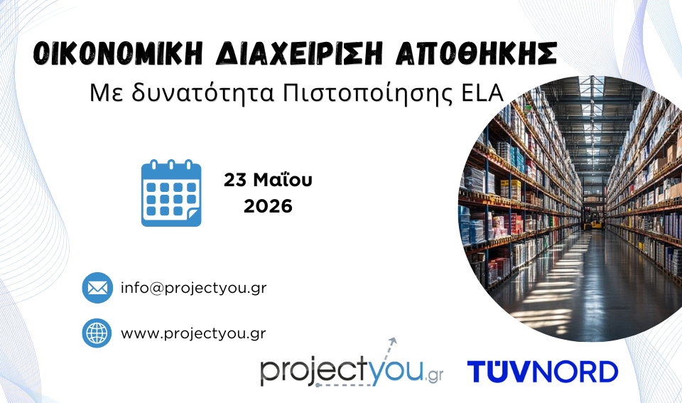 Η projectyou, εγκεκριμένος Φορέας Εκπαίδευσης από το ΙLME για την Ελλάδα και την Κύπρο, για τη Διεθνή Πιστοποίηση στην Εφοδιαστική Αλυσίδα (Logistics) από το European Logistics Association (ELA), ανακοινώνει τον 22ο κύκλο Εκπαίδευσης και Προετοιμασίας για την Πιστοποίηση ELA. Ο 22ος κύκλος αρχίζει στις 25.04.26 και ολοκληρώνεται στις 24.06.26.